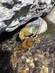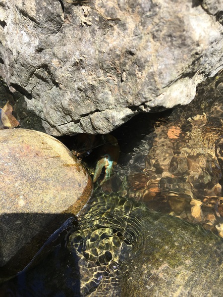 „Was starrt mich dieser Mensch so an. Normalerweise werfen sie Steine nach mir, damit ich mich bewege“ dachte sich der mutige Flusskrebs, als nichts weiter geschah. Inzwischen war ein zweiter Mensch dazugekommen, der sich ebenfalls nur über ihn beugte und ihn anschaute. Jetzt wurde er noch etwas mutiger und krabbelte unter dem Stein hervor und schwamm im seichten Wasser zum nächsten Stein. So nahe hat er sich noch keinem Menschen gezeigt. Aber es war auch noch keiner dabei, der ihn nur anschauen wollte, wie er feststellte. Ein bissl stolz wurde er jetzt auch, konnte er doch sehen, dass diese Menschen ein freundliches Gesicht machten und sich offensichtlich sehr über ihn freuten und das, obwohl er nur mehr eine Schere hatte. Da er nun mit dem Kopf aus dem Wasser ragte, konnte er auch ein paar Wortfetzen verstehen. Er hörte noch, wie der eine Mensch zum anderen sagte: „Das ist ab sofort der Herbert, der Name passt zu ihm, oder?“ Der andere stimmte gleich zu „Ja, da bin ich voll bei dir. Herbert ist perfekt“. Der mutige Flusskrebs, der soeben den Namen Herbert bekam, krabbelte nun doch schnell weiter und versteckte sich wieder unter seinem großen Stein. Was die beiden Menschen nicht sehen konnten, er strahlte über das ganze Gesicht. „Herbert, das ist aber wirklich ein schöner Name. Jetzt bin ich der erste edle Flusskrebs mit einem eigenen Namen. Wauh, dass mir das in meinem Alter noch gegönnt ist“ freute sich Herbert der Flusskrebs so richtig. Als er dann wieder unter dem Stein hervorlugte, sah er noch, wie diese beiden Menschen in Richtung Gebüsch marschierten und dann verschwunden waren.